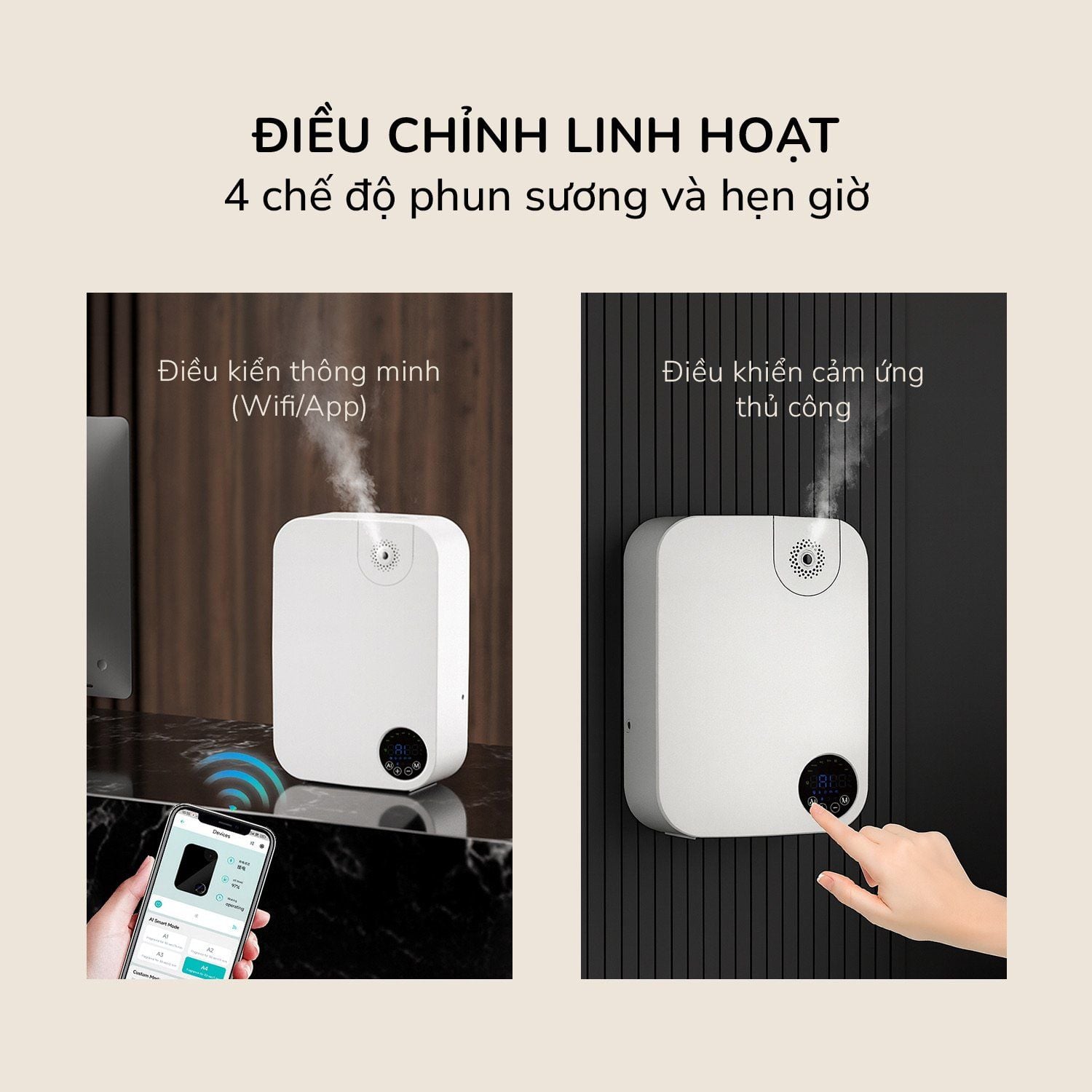 - Tùy chỉnh 4 chế độ linh hoạt: Cho phép bạn tùy chỉnh cường độ hương thơm và thời gian phun sương bất kỳ lúc nào.