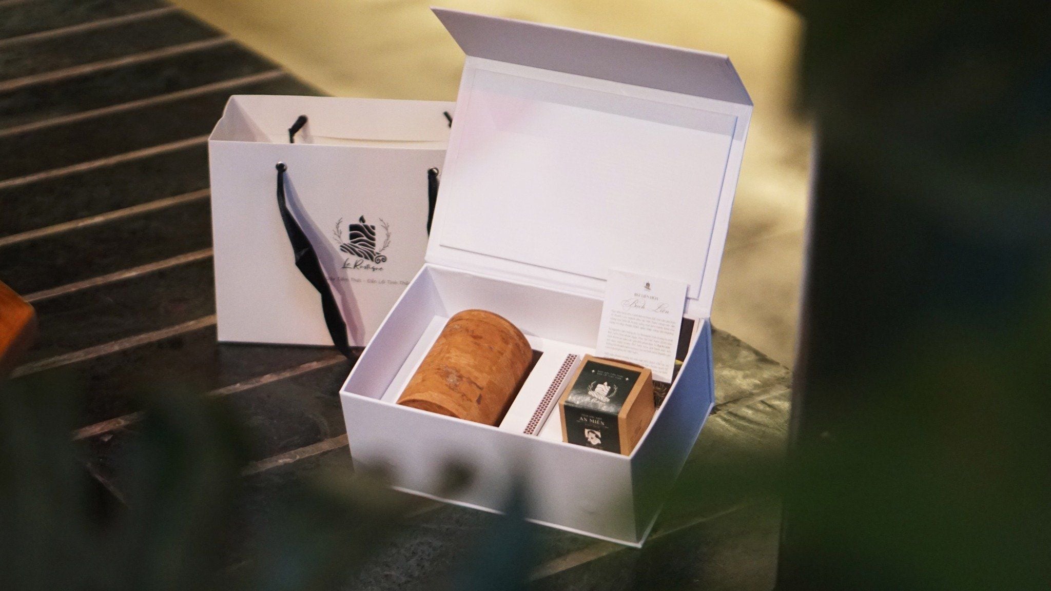 - Le Rustique cũng cung cấp dịch vụ tùy chỉnh thiết kế hộp quà theo nhận diện thương hiệu doanh nghiệp, đảm bảo sự đồng nhất và tinh tế trong từng chi tiết.